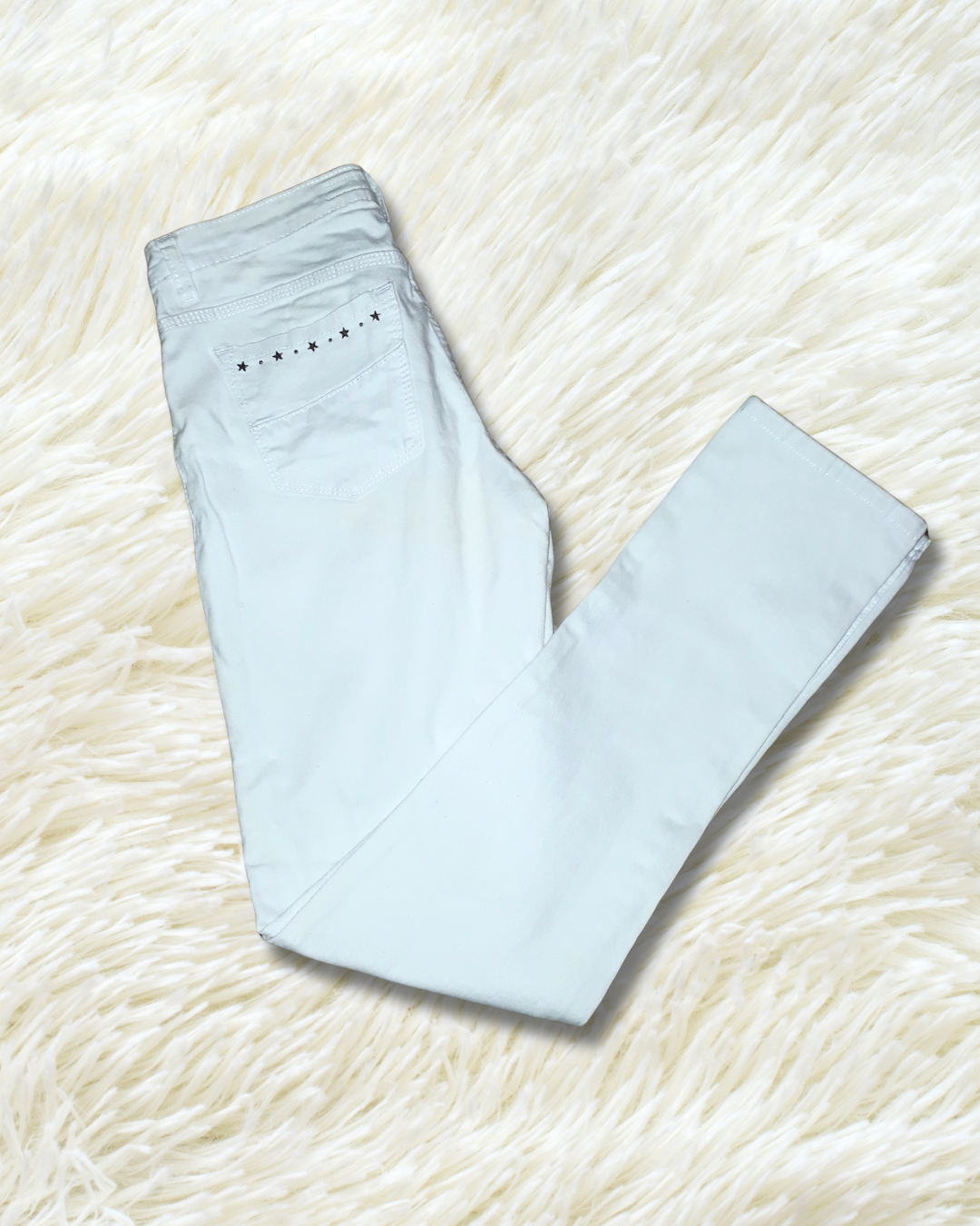 Jean Blanco con estrellitas en los bolsillos. Talle 36/38. Única prenda. Entrega inmediata
